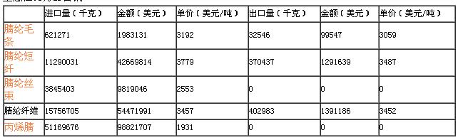 錦橋紡織網(wǎng)—資訊頻道> 化纖信息> 化纖動(dòng)態(tài)>正文 2013年4月腈綸產(chǎn)業(yè)鏈進(jìn)出口數(shù)據(jù)統(tǒng)計(jì)