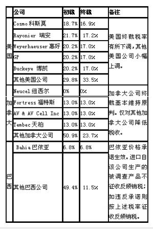 漿粕反傾銷(xiāo)初裁終裁結(jié)果對(duì)比明細(xì)