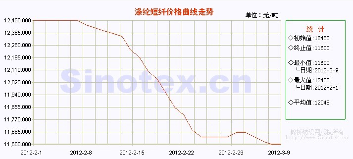 西南地區(qū)受紗、布行情低迷的拖累,滌綸短纖市場氣氛同樣清淡,報價基本持平,市場詢盤較為稀少,去庫存是企業(yè)首選,市場成交量相比上周有所下滑,成交重心仍然不穩(wěn),下游企業(yè)對后市信心不足,對市場上高報價難以接受。目前當(dāng)?shù)?.4D主流送到成交報價在12100元/噸,中化纖滌短10500-10800元/噸,原料能維持此行情,主要受到1.98萬元/噸的棉花收儲價格支撐。