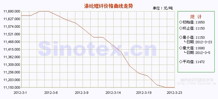 本周(3.17-3.23),聚酯原料行情穩(wěn)中探漲,下游紗線買(mǎi)盤(pán)僵持,備貨稀少。滌綸短纖行業(yè)開(kāi)工負(fù)荷6.8成左右,庫(kù)存25天左右,產(chǎn)銷低迷。滌短市場(chǎng)價(jià)格疲弱下調(diào),國(guó)內(nèi)主流市場(chǎng)1.4D滌綸短纖送到成交報(bào)價(jià)為11200-11350元/噸(現(xiàn)款或承兌),較上周下跌200元/噸左右。