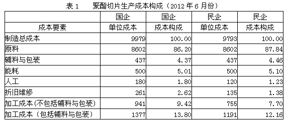 1.聚酯切片生產(chǎn)成本構(gòu)成