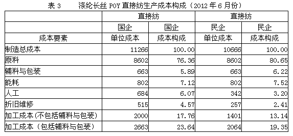 3.滌綸長絲POY直接紡生產(chǎn)成本構(gòu)成