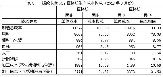 5.滌綸長絲FDY直接紡生產(chǎn)成本構(gòu)成
