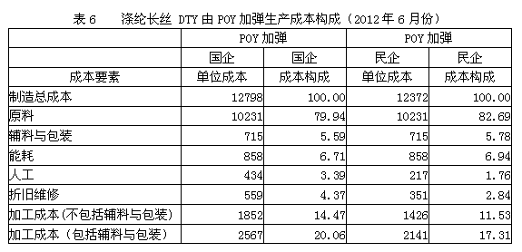 6.滌綸長絲DTY由POY加彈生產(chǎn)成本構(gòu)成