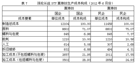 7.滌綸長絲DTY直接紡生產(chǎn)成本構(gòu)成