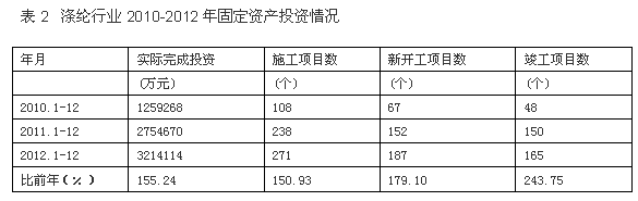 據(jù)國家統(tǒng)計(jì)局公布的數(shù)據(jù),我國滌綸行業(yè)實(shí)際完成投資額從2010年125.93億元改變至2012年321.41億元,增加155.24%;當(dāng)年施工項(xiàng)目數(shù)從108個(gè)改變至271個(gè),增加150.93%;其中新開工項(xiàng)目數(shù)從67個(gè)改變至187個(gè),增加179.10%;截至當(dāng)年底為止,已實(shí)現(xiàn)竣工項(xiàng)目數(shù)從48個(gè)改變至165個(gè),增加243.75%,表明該行業(yè)投資項(xiàng)目進(jìn)展?fàn)顩r較好。