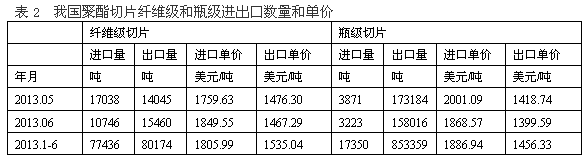 從我國(guó)聚酯切片不同品種的進(jìn)出口情況看,2013年1-6月份聚酯切片纖維級(jí)進(jìn)口7.74萬(wàn)噸,進(jìn)口單價(jià)1805.99美元/噸;出口8.02萬(wàn)噸,出口單價(jià)1535.04美元/噸;聚酯切片瓶級(jí)進(jìn)口1.73萬(wàn)噸,進(jìn)口單價(jià)1886.94美元/噸;出口85.34萬(wàn)噸,出口單價(jià)1456.33美元/噸;表明我國(guó)聚酯切片纖維級(jí)和瓶級(jí)進(jìn)出口狀況良好。