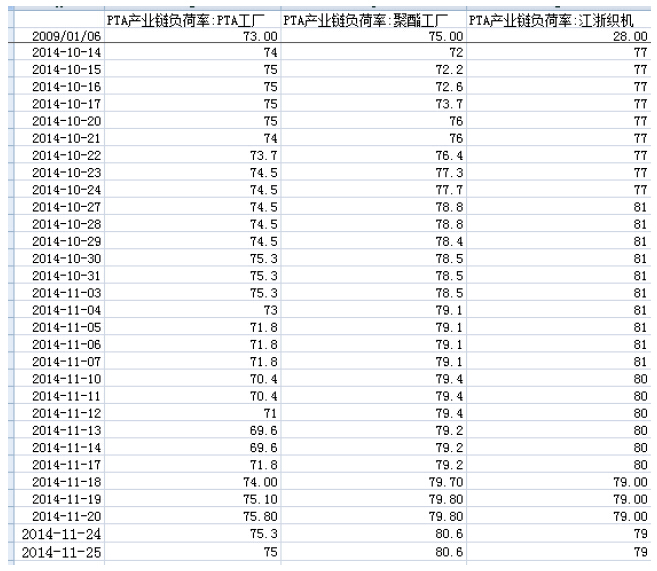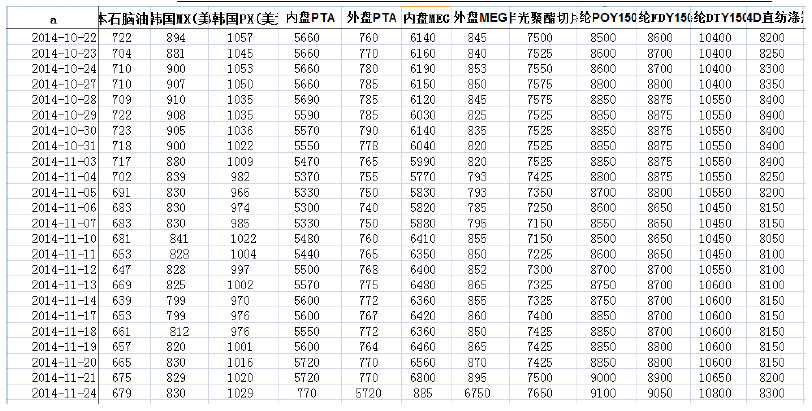 PTA期貨評論:昨日原油再創(chuàng)新低至73.5,PX下跌12美元至1013美元FOB,目前PX利潤尚可,暫時PX無減產(chǎn)的理由,供需層面來看上游總體依舊較弱。12月的PX開工來看,除了SG及STC減產(chǎn)10-15%之外,還未見減產(chǎn)計劃,國內(nèi)的麗東及福佳大化依據(jù)逸盛減產(chǎn)的幅度而作調(diào)整。逸盛宣布12月減產(chǎn)負(fù)荷至5成以下,市場反應(yīng)不大,在消息方面存有爭議,翔鷺的老線減產(chǎn)或推遲至12月底。需求方面聚酯總體開工8成,這樣的需求保守估計可以持續(xù)到12月底,目前總體庫存較低,江蘇區(qū)域短線庫存近0庫存,POY7-8天,DTY15天,F(xiàn)DY7天。短期對現(xiàn)貨形成支撐,中期來看PTA環(huán)節(jié)隨著減產(chǎn)的兌現(xiàn),利多變成利空,另外12月份PTA的減產(chǎn)沒有市場預(yù)期的那么大。聚酯需求方面來看目前需求較好,但是隨著時間的推進(jìn),需求有好變差,我們?nèi)晕茨壳笆遣季肿隹?505合約的較好時期。這幾天在長三角調(diào)研的情況來看,從下游往上看十二月中下旬做空較好,但是從現(xiàn)在的上游來看,現(xiàn)在布局更為合適。1501合約大量套利資金在做,有倉單的產(chǎn)業(yè)戶可在價差拉大時做賣出保值,以獲取期限套利的機會。