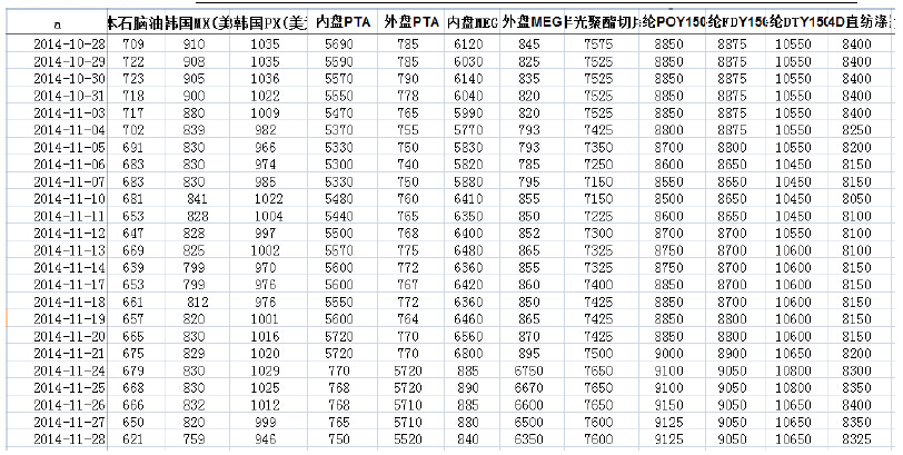 2、中石化12月聚酯切片合同報(bào)價(jià)出臺(tái):半光切片7900元/噸,有光切片7900元/噸,工業(yè)絲級(jí)切片7900元/噸,全消光切片8600元/噸。