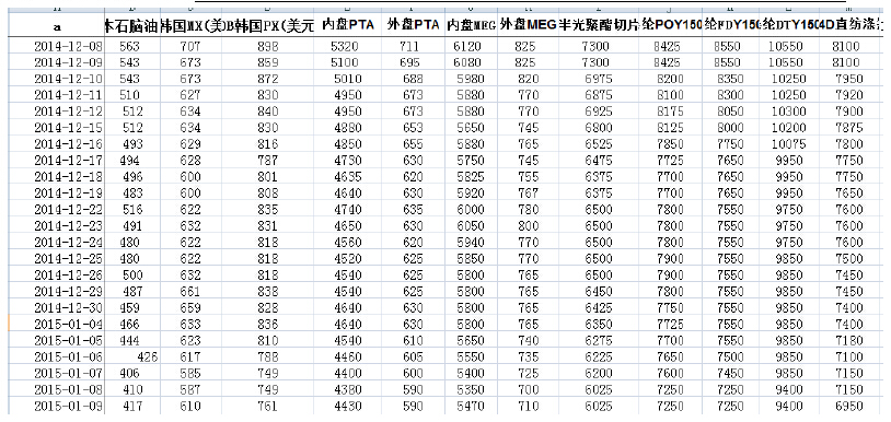 PTA期貨評論:周五紐約原油2月期貨跌0.43美元,收于48.36美元/桶;布倫特2月期貨跌0.85美元,收于50.11美元/桶。亞洲PX漲12美元至760.75美元/噸FOB韓國和782.75美元/噸CFR中國。MX漲23美元至610美元/噸FOB韓國。石腦油漲6.63美元至416.63美元/噸CFR日本。目前PX依舊存有較好的利潤,翔鷺1套165萬噸PTA裝置5號正式停車檢修,重啟時間未定。盛虹150萬噸PTA裝置元旦前空壓機故障,減產(chǎn)至50%運行,預(yù)計將維持1個月左右,國內(nèi)PTA開工率近期下滑至72.4%。中國國內(nèi)聚酯產(chǎn)銷60-85%。國內(nèi)庫存充足也抑制市場買氣,買家多觀望,不急于進行采購,即使采購也多僅按需。終端用戶不愿進行建庫操作,尤其是在春節(jié)臨近,中國下游需求近期或逐漸走弱的形勢下??傮w評估而言,PX及聚酯目前依舊處于增庫存階段,織機織造開工率還將繼續(xù)回落。大勢依舊是宏觀和原油帶來的壓力,中觀層面是產(chǎn)業(yè)的過剩,微觀層面是階段性的需求在萎縮,大方向依舊難以看到較好的反彈動力,前期空單繼續(xù)持有。