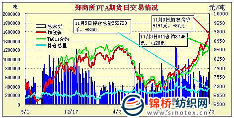| 11月3日鄭州商品交易所PTA期貨成交及持倉(cāng)排名表 |