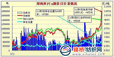 鄭商所PTA期貨交易行情——全線漲停(10-11-8)