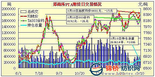 3月10日鄭州商品交易所PTA期貨成交及持倉(cāng)排名表