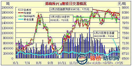 3月25日鄭州商品交易所PTA期貨成交及持倉(cāng)排名表