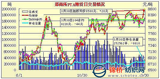 3月30日鄭州商品交易所PTA期貨成交及持倉排名表
