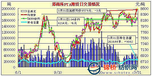 3月31日鄭州商品交易所PTA期貨成交及持倉(cāng)排名表