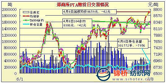 4月8日鄭州商品交易所PTA期貨成交及持倉(cāng)排名表