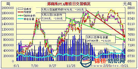 5月21日鄭州商品交易所PTA期貨成交及持倉排名表