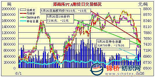 5月26日鄭州商品交易所PTA期貨成交及持倉排名表