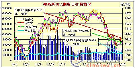6月25日鄭州商品交易所PTA期貨成交及持倉(cāng)排名表