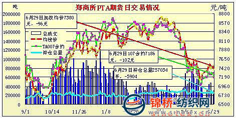 6月29日鄭州商品交易所PTA期貨成交及持倉(cāng)排名表