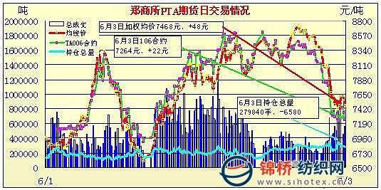 6月3日鄭州商品交易所PTA期貨成交及持倉排名表