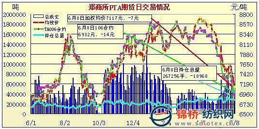 6月8日鄭州商品交易所PTA期貨成交及持倉排名表