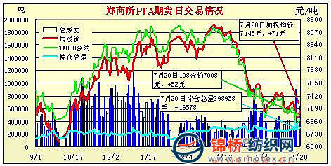 7月20日鄭州商品交易所PTA期貨成交及持倉(cāng)排名表