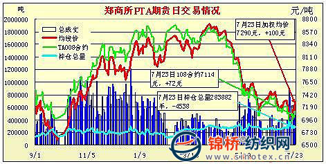 7月23日鄭州商品交易所PTA期貨成交及持倉排名表