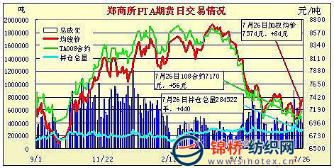 7月26日鄭州商品交易所PTA期貨成交及持倉排名表