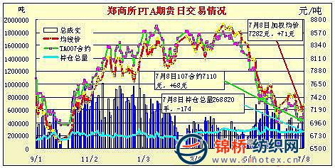 7月8日鄭州商品交易所PTA期貨成交及持倉(cāng)排名表