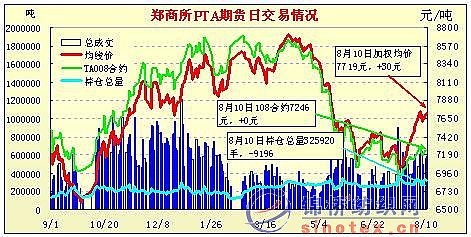 8月10日鄭州商品交易所PTA期貨成交及持倉(cāng)排名表