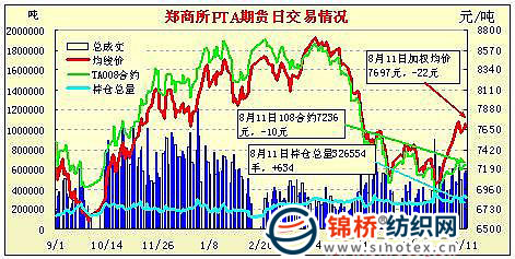 8月11日鄭州商品交易所PTA期貨成交及持倉排名表