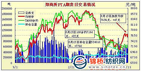 8月13日鄭州商品交易所PTA期貨成交及持倉排名表