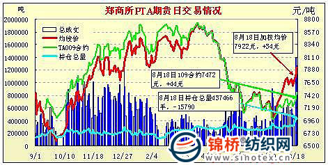 8月18日鄭州商品交易所PTA期貨成交及持倉排名表