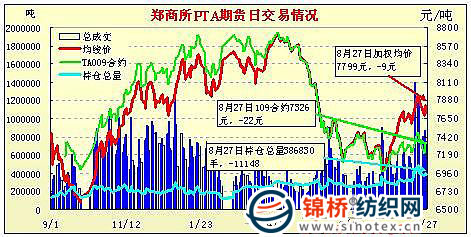8月27日鄭州商品交易所PTA期貨成交及持倉(cāng)排名表