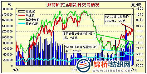 9月10日鄭州商品交易所PTA期貨成交及持倉(cāng)排名表