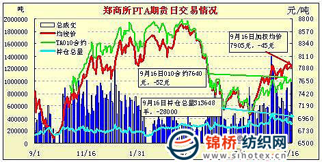 9月16日鄭州商品交易所PTA期貨成交及持倉排名表