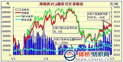 9月17日鄭州商品交易所PTA期貨成交及持倉(cāng)排名表