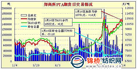 1月14日鄭州商品交易所PTA期貨成交及持倉排名表