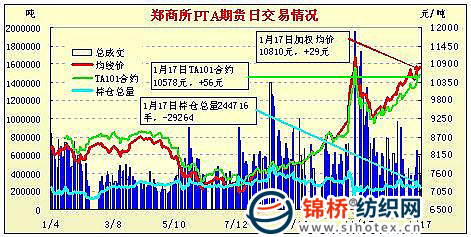 1月17日鄭州商品交易所PTA期貨成交及持倉(cāng)排名表