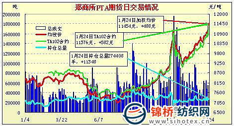 1月24日鄭州商品交易所PTA期貨成交及持倉排名表