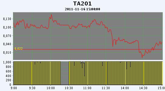 PTA期貨先落后升增倉(cāng)收漲(11-11-16)