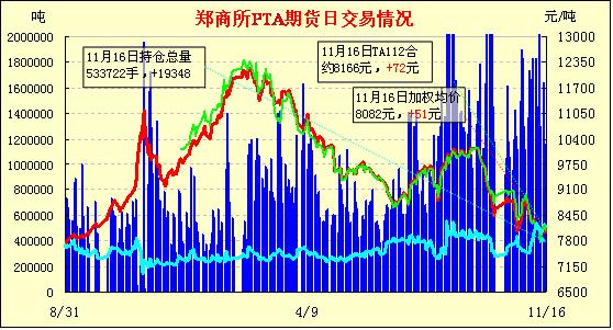 11月16日PTA期貨成交及持倉(cāng)排名表