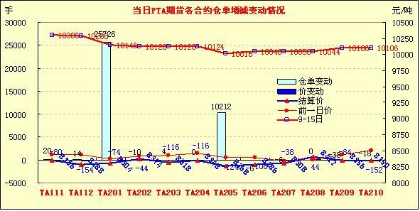 11月3日PTA期貨高開回落,寬幅振蕩,成交尚可,增倉明顯。當(dāng)日總成交166.26萬手,較昨日增加26.51萬手,成交金額687.08億元,較昨日增加107.28億元,當(dāng)日成交金額是棉花期貨79.38億元的8.6倍。當(dāng)日增倉1.70萬手,倉單總量增至39.9萬手。各合約成交均價8265元/噸,-34元。其中首期合約8424元/噸,+68元;TA201合約8264元,-40元;主力TA205合約8270元,+2元。當(dāng)日公布的首期合約交割價8682元/噸,-6元。