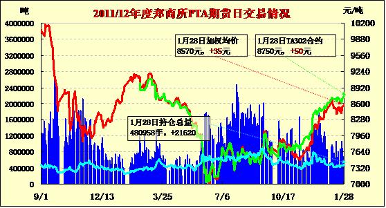 PTA期貨縮量增倉強(qiáng)勢(shì)續(xù)漲(1-28)