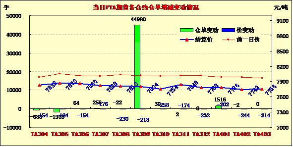 PTA期貨繼續(xù)低開增倉大跌(4-15)