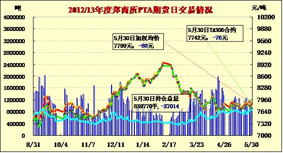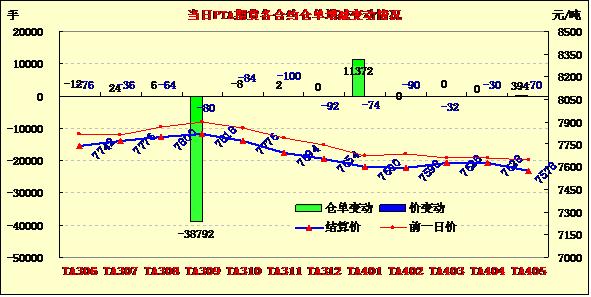 PTA期貨大幅低開縮量下跌(5-30)