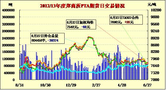 PTA期貨低開回升漲跌互現(xiàn)(6-27)
