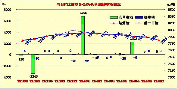 PTA期貨繼續(xù)下行縮量收跌(8-12)